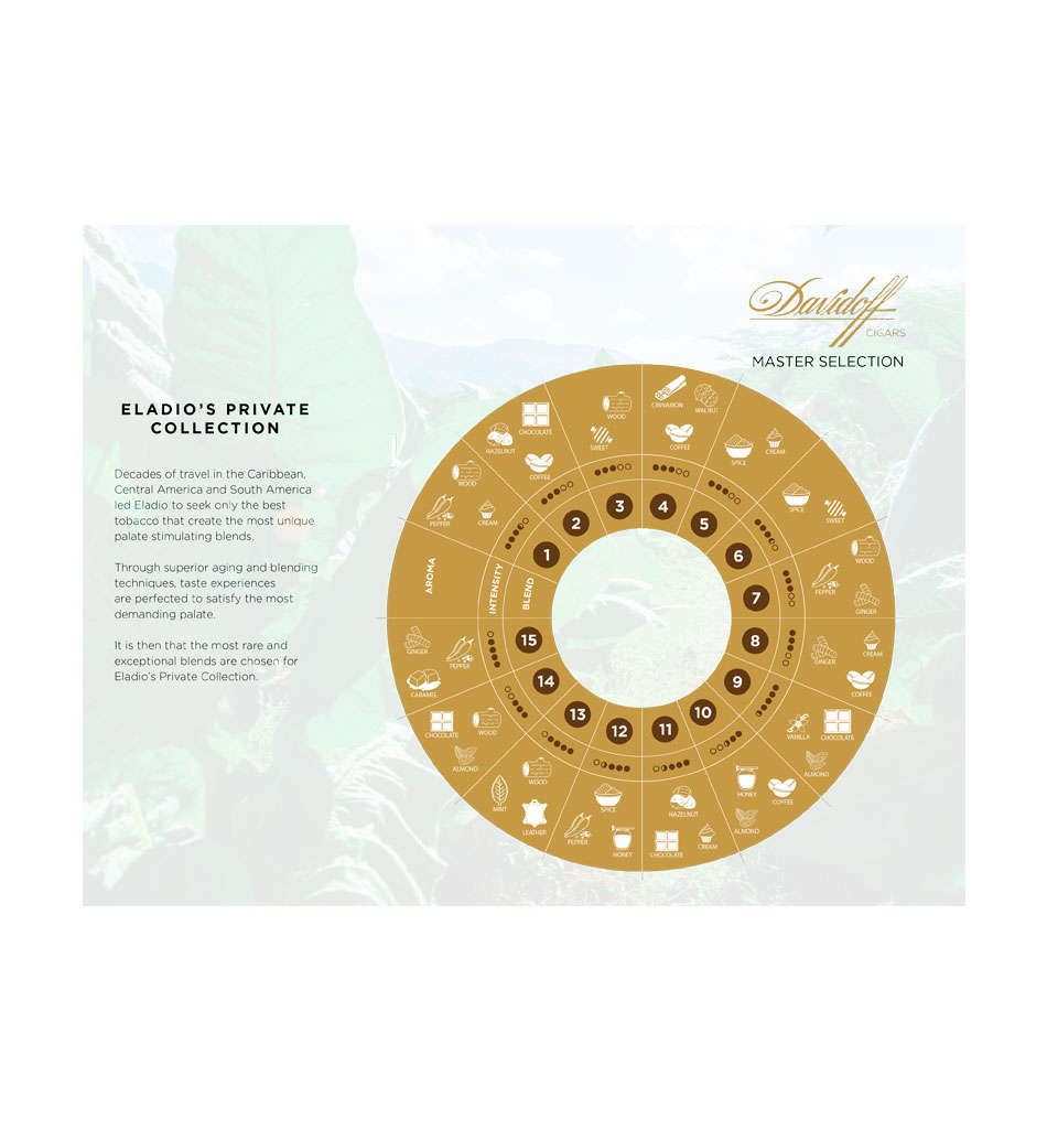 Eladio’s Collection is 15 different Master Selection Blends hand picked to exemplify Eladio’s vision of balance and flavor.