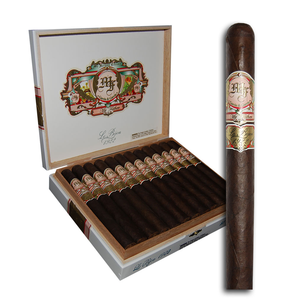 My Father 1922 Le Bijou cigars are handmade in Nicaragua. While the original My Father was made secretly by Don Pepin’s son Jaime, Le Bijou is Don Pepin’s homage to his own father, born in 1922. French for “the jewel,” Le Bijou lives up to its billing! Notoriously difficult to grow, Well-aged Pelo de Oro wrapper leaves (dubbed Nicaraguan Habano Oscuro), full-bodied blend of Nicaraguan tobaccos. A sweet, creamy start gives way to some spice and bold tobacco flavor. Buy them now