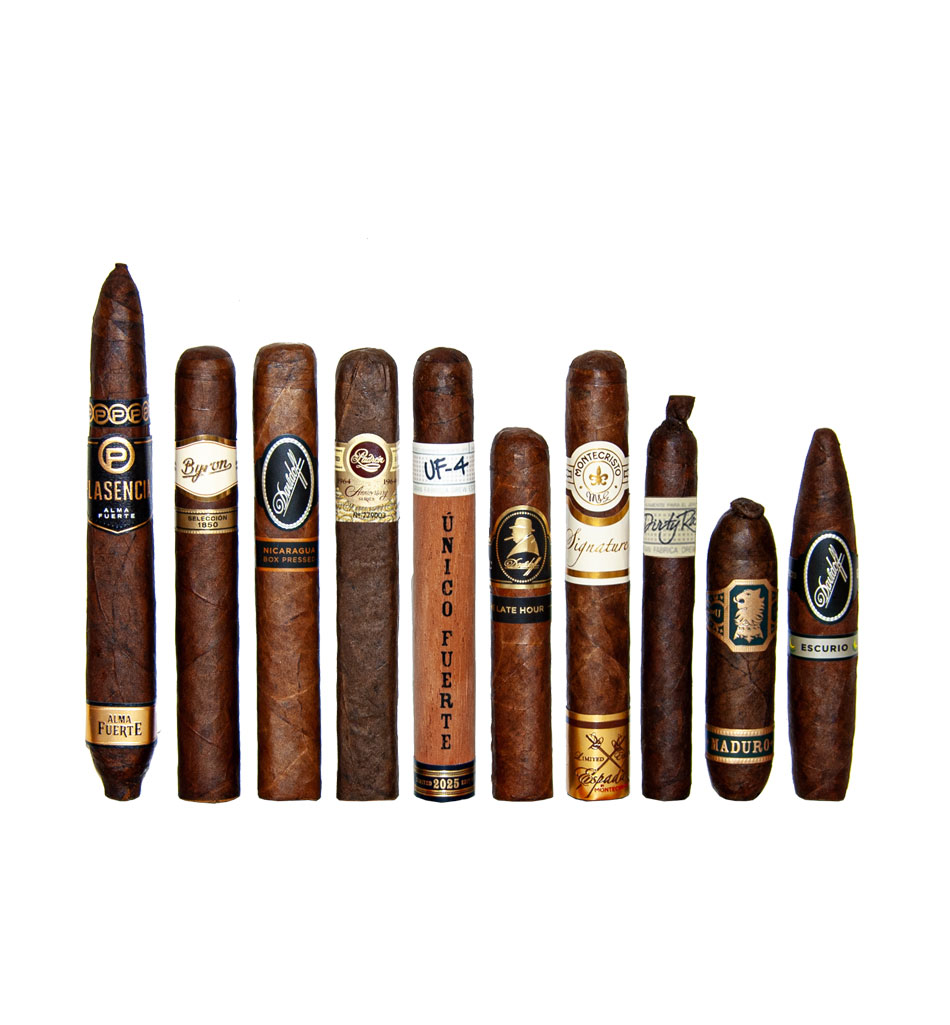This discounted 8ct. sampler includes a Montecristo Signature Valiente, a Davidoff Nicaragua Box Pressed Toro, Davidoff Aged Escurio Gran Toro 2018, Davidoff Winston Churchill Late Hour Robusto, Liga Privada Dirty Rat, Under Crown Maduro FLying Pig, Liga Privada UF4, Padron 1964 Imperial Maduro, Plasencia Alma Fuerte Generacion and a Byron 1850 No.3 all at a great price.