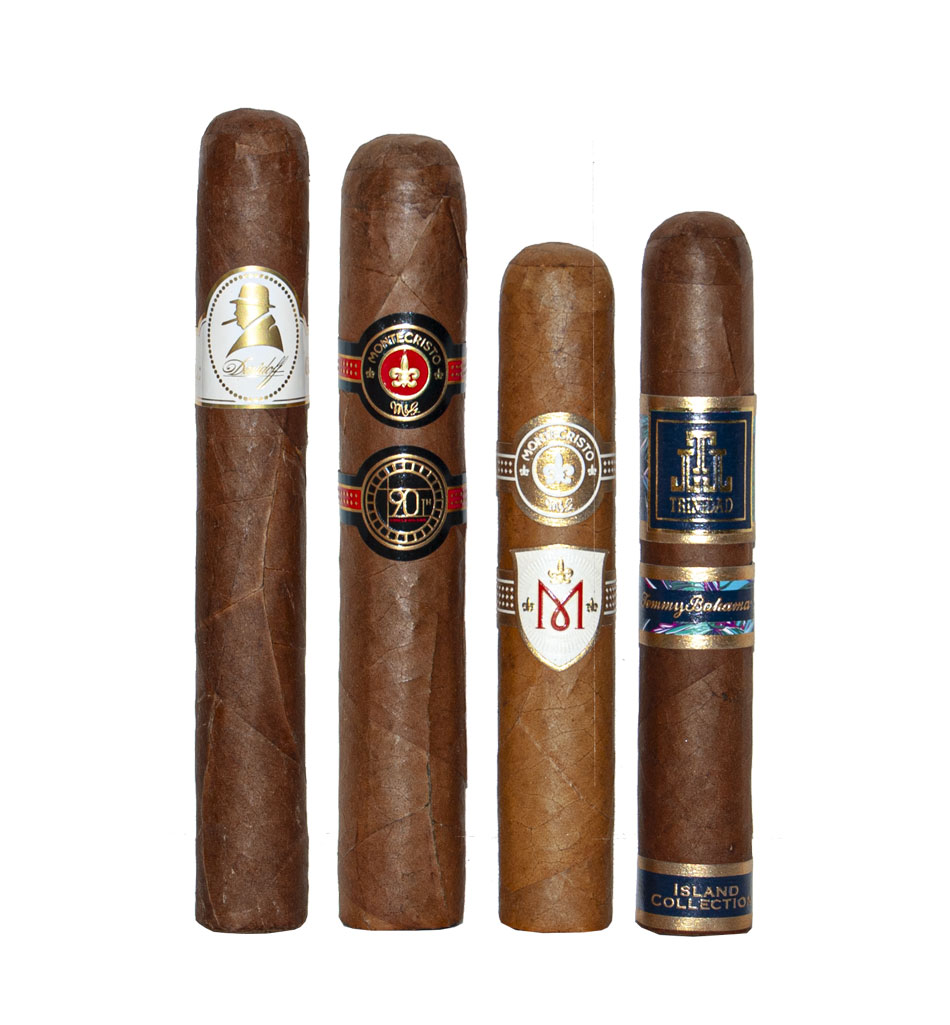 This sampler contains 4 amazing blends at a fantastic price. You’ll receive the robusto size of the new H. Upmann Tommy Bahama, Montecristo M, and the Montecristo 90th along with a Davidoff Winston Churchill Toro. Great blends with a ton of flavor.